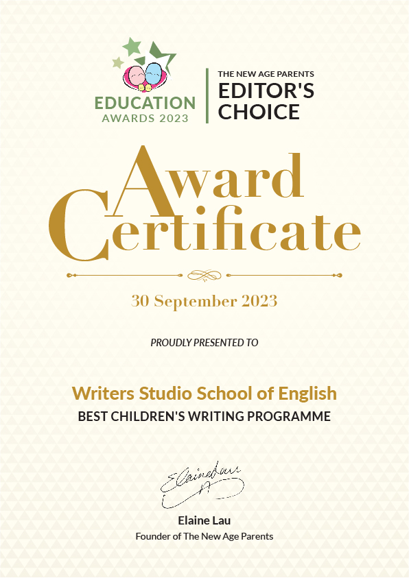 We are thrilled to announce that Writers Studio School of English has won the Editor’s Choice award for Best Children’s Writing Programme in The New Age Parents Education Awards 2023! This prestigious award recognises our excellence in teaching English and creative writing to children of all ages and abilities. Read TNAP’s article about Writers Studio School of English here.